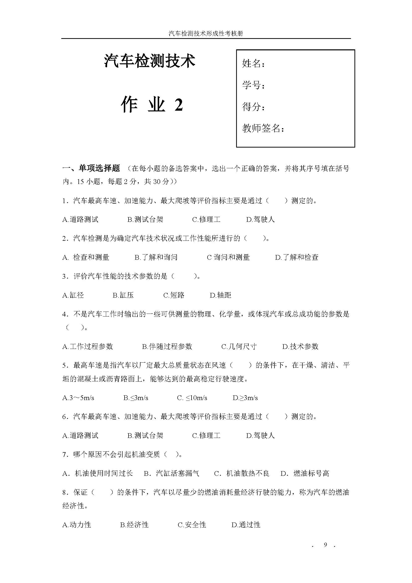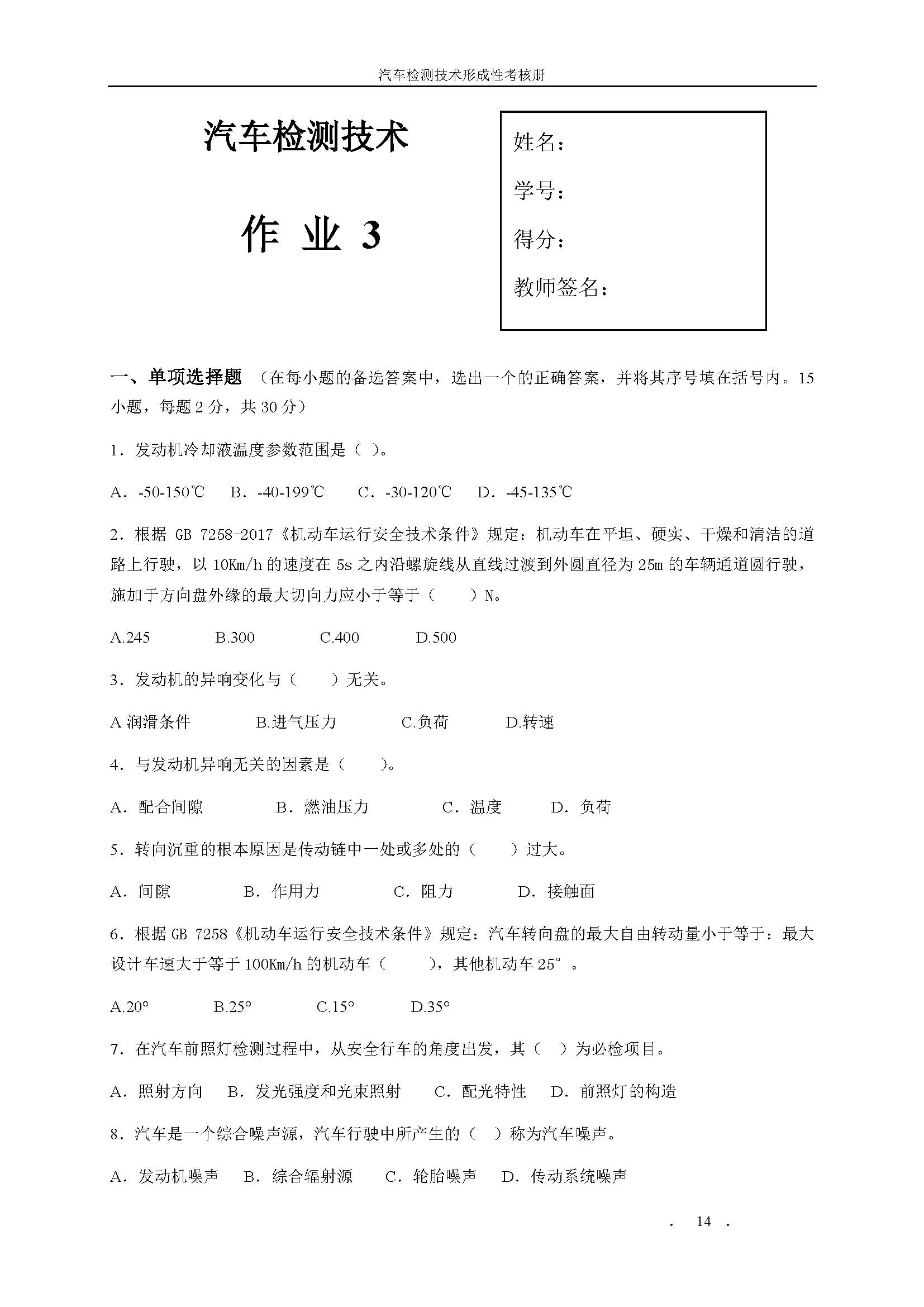 03984《汽车检测技术》课程形考册