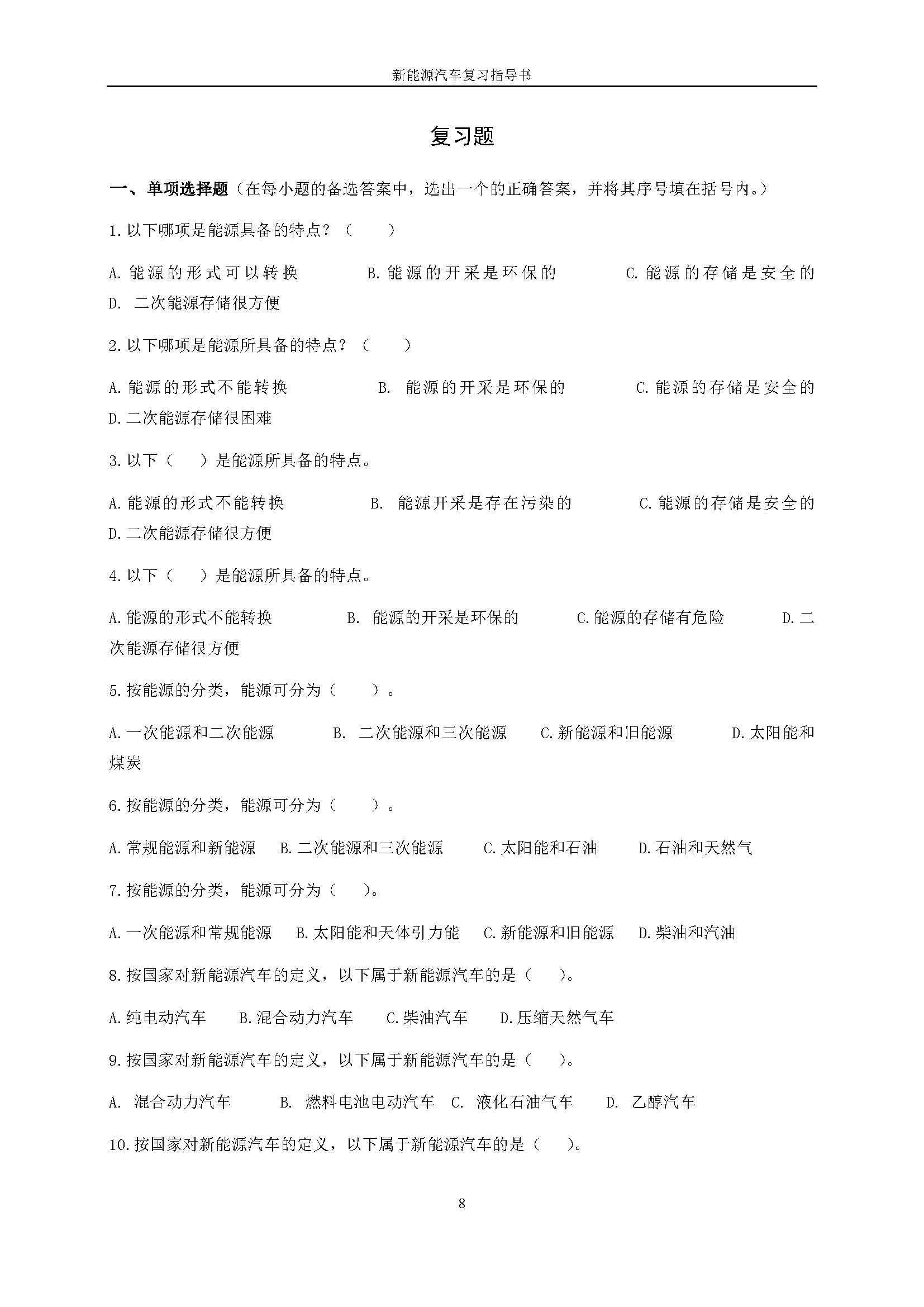 03995《新能源汽车》课程复习指导书
