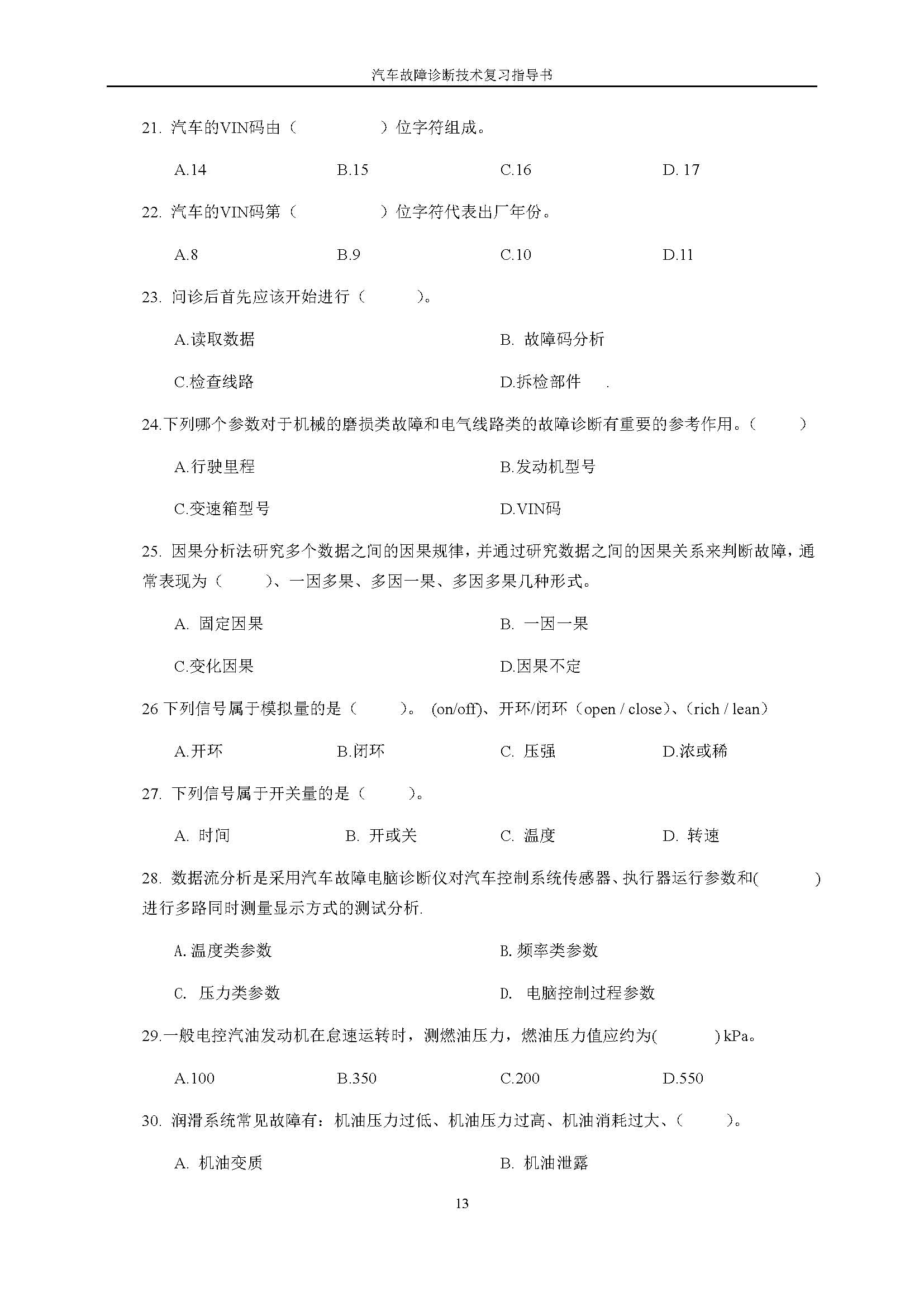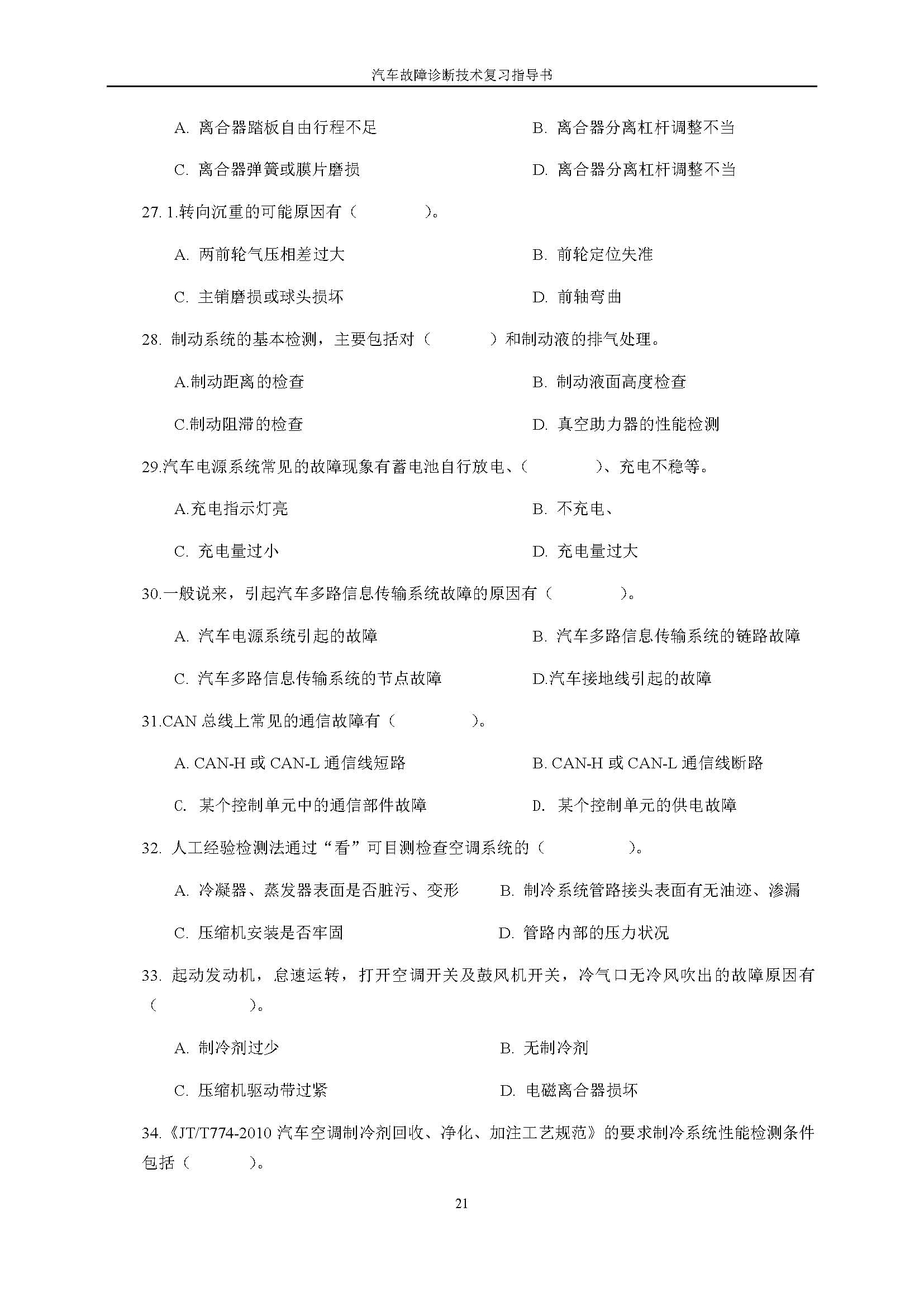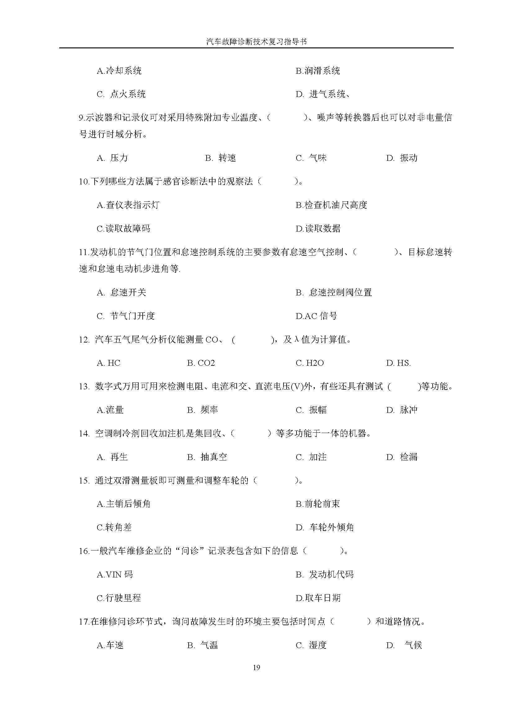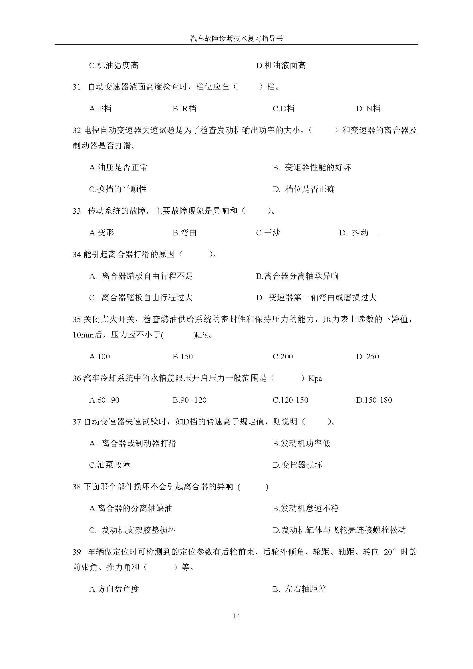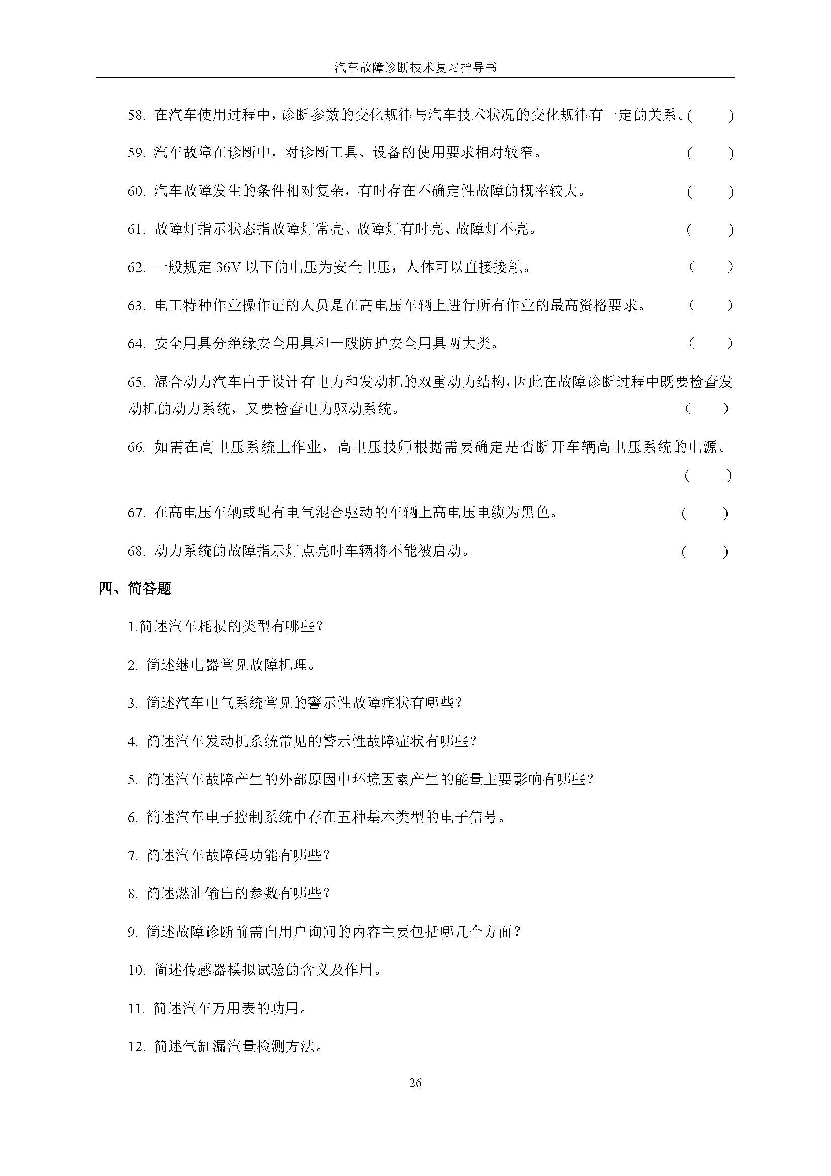 03998《汽车故障诊断技术》课程复习指导书