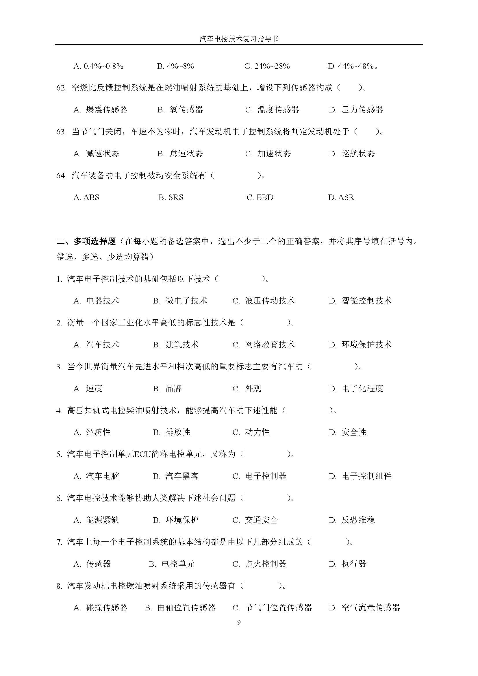 03987《汽车电控技术》课程复习指导书