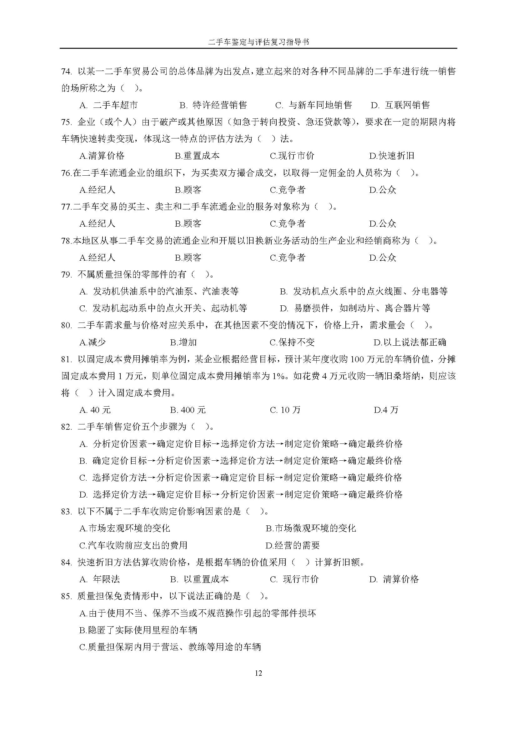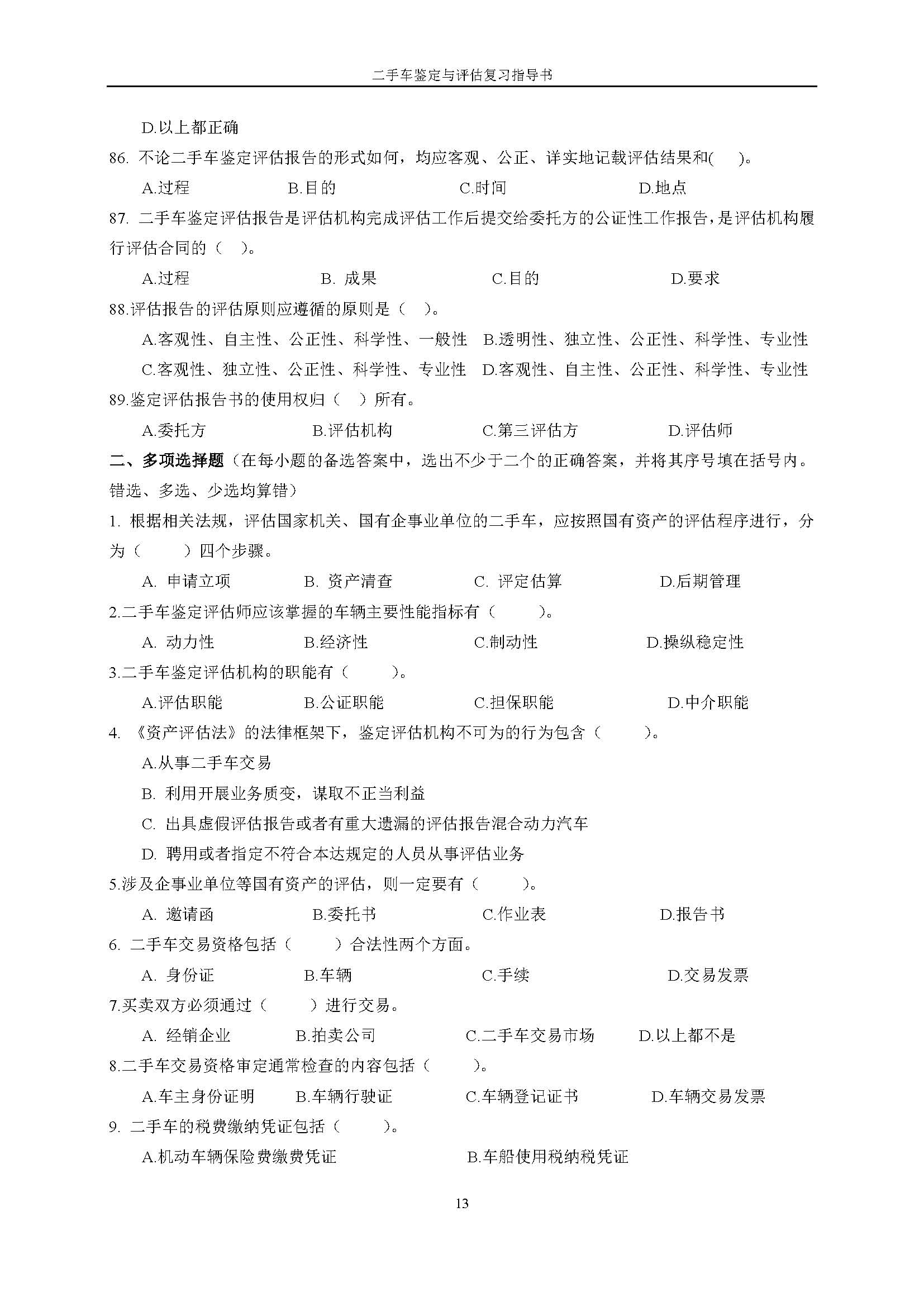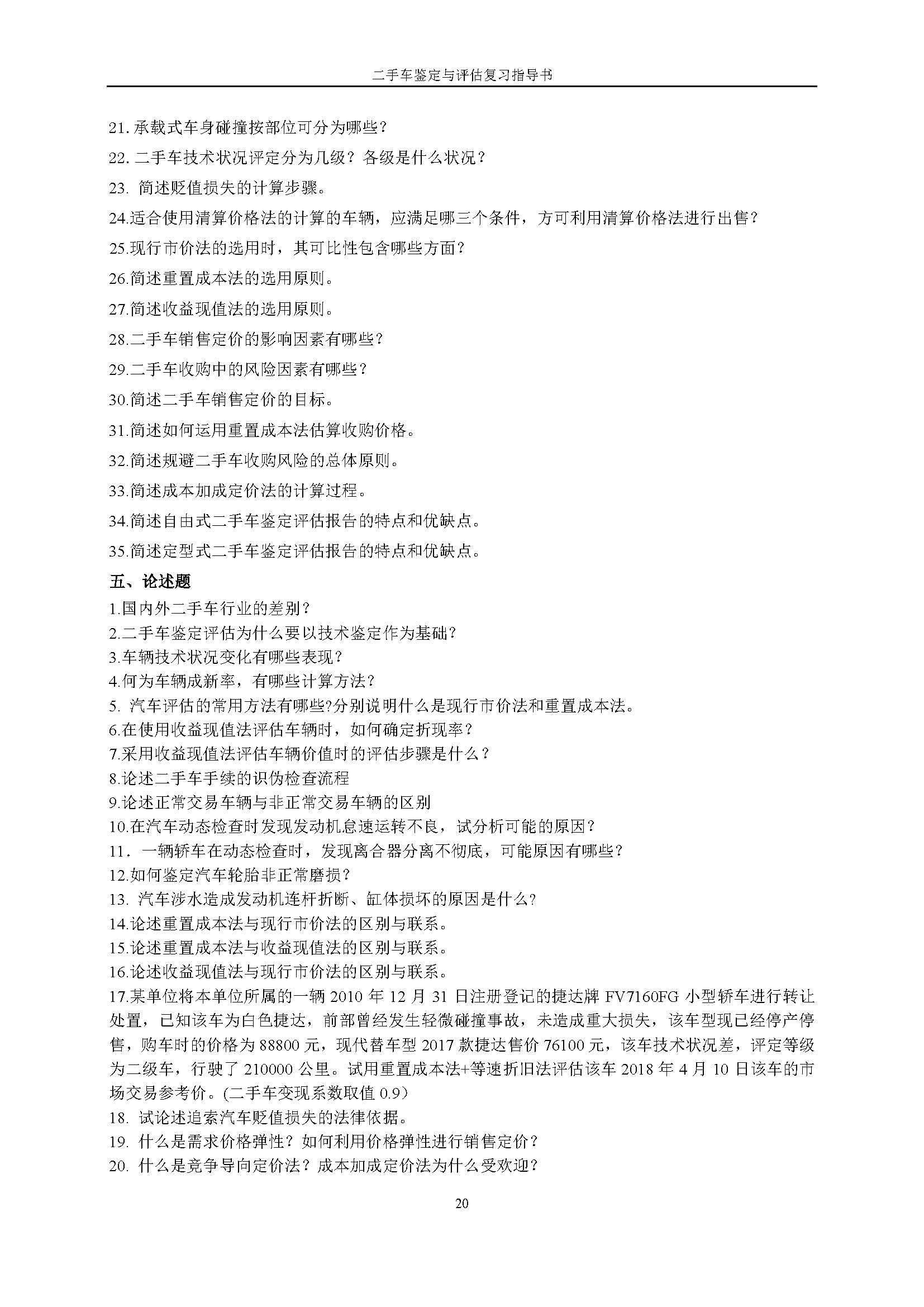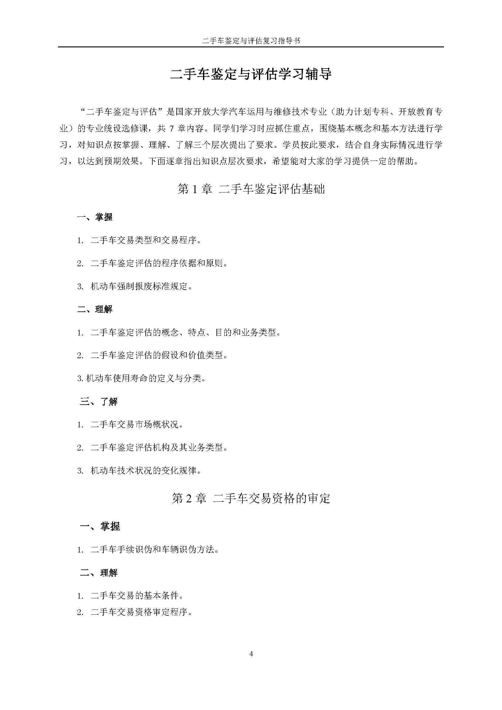 03934《二手车鉴定与评估》课程复习指导书