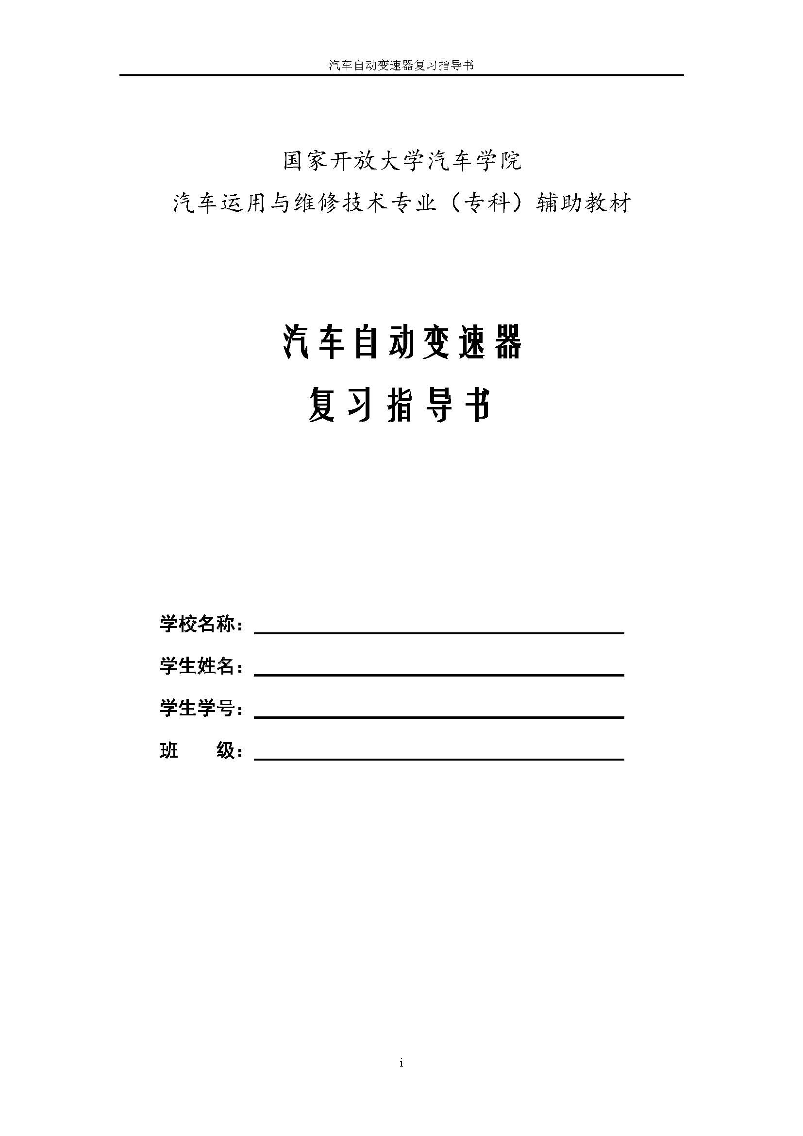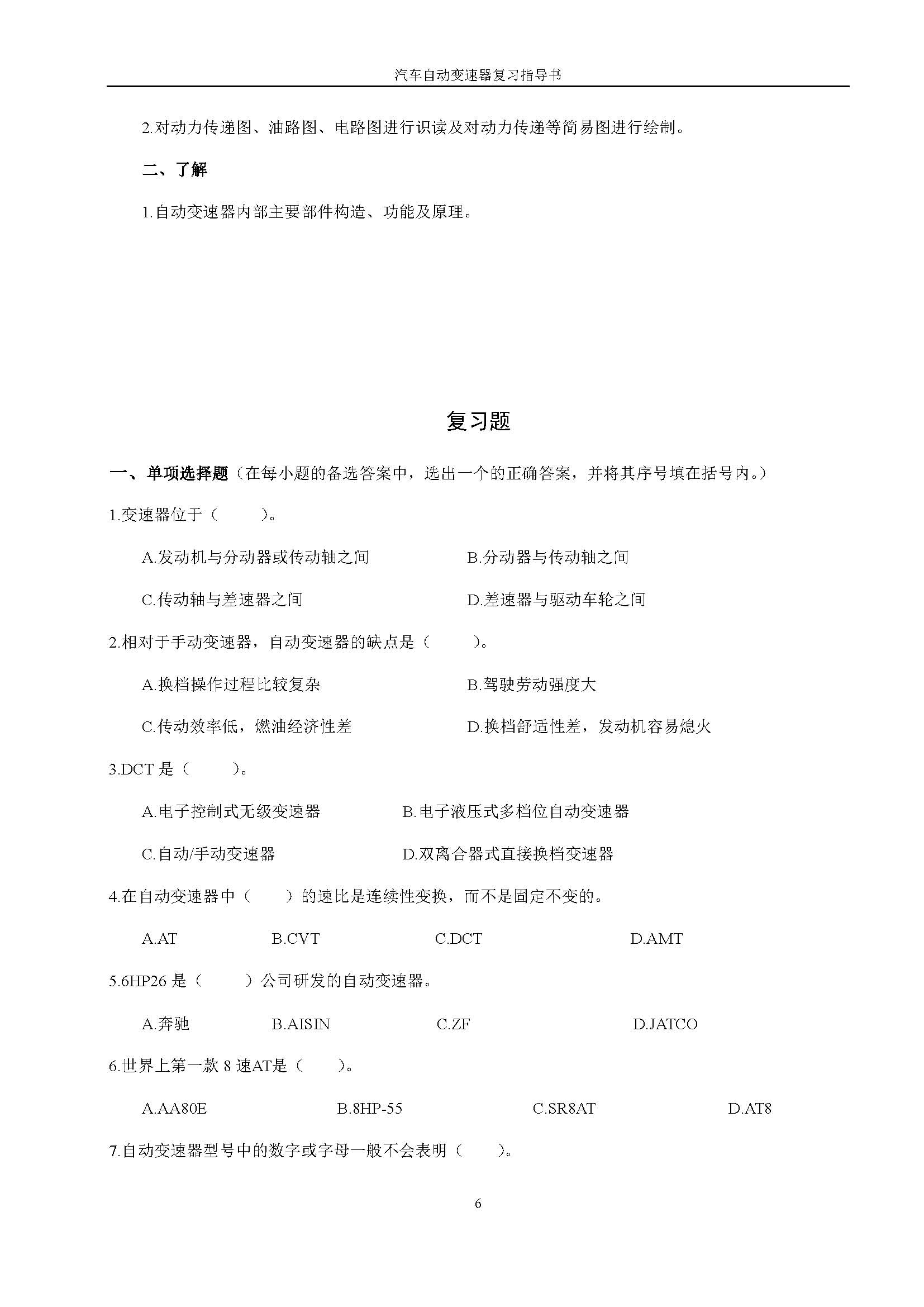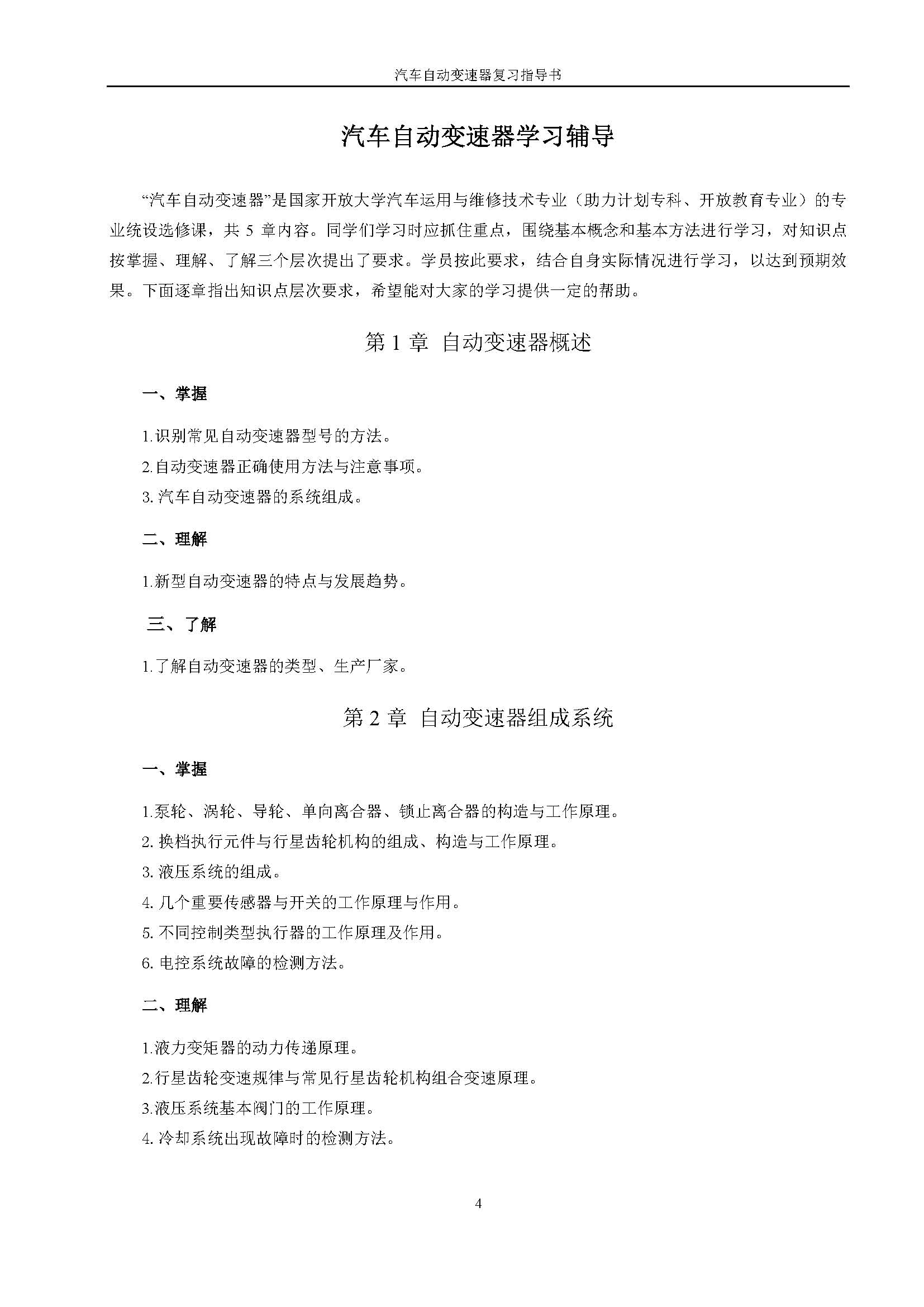 03938《汽车自动变速器》课程复习指导书
