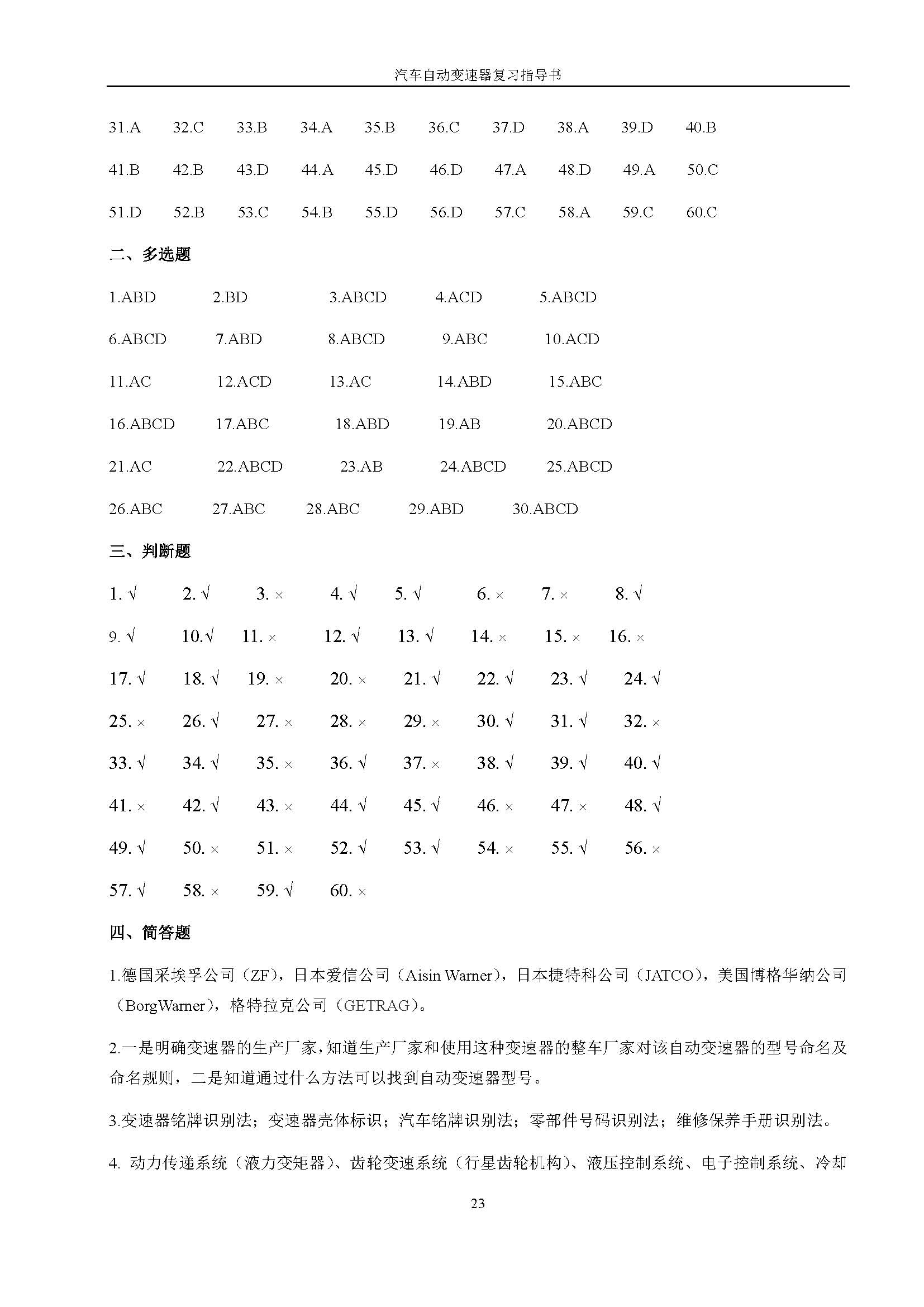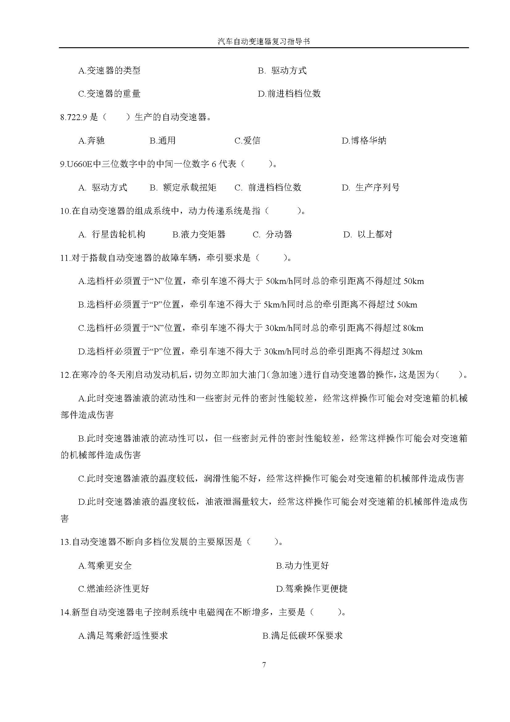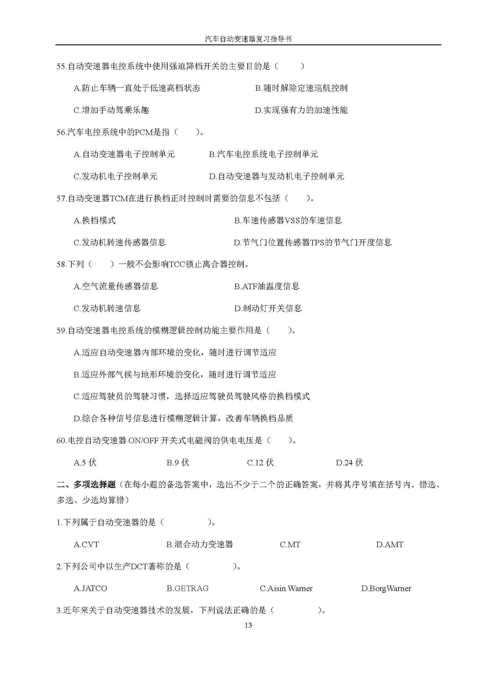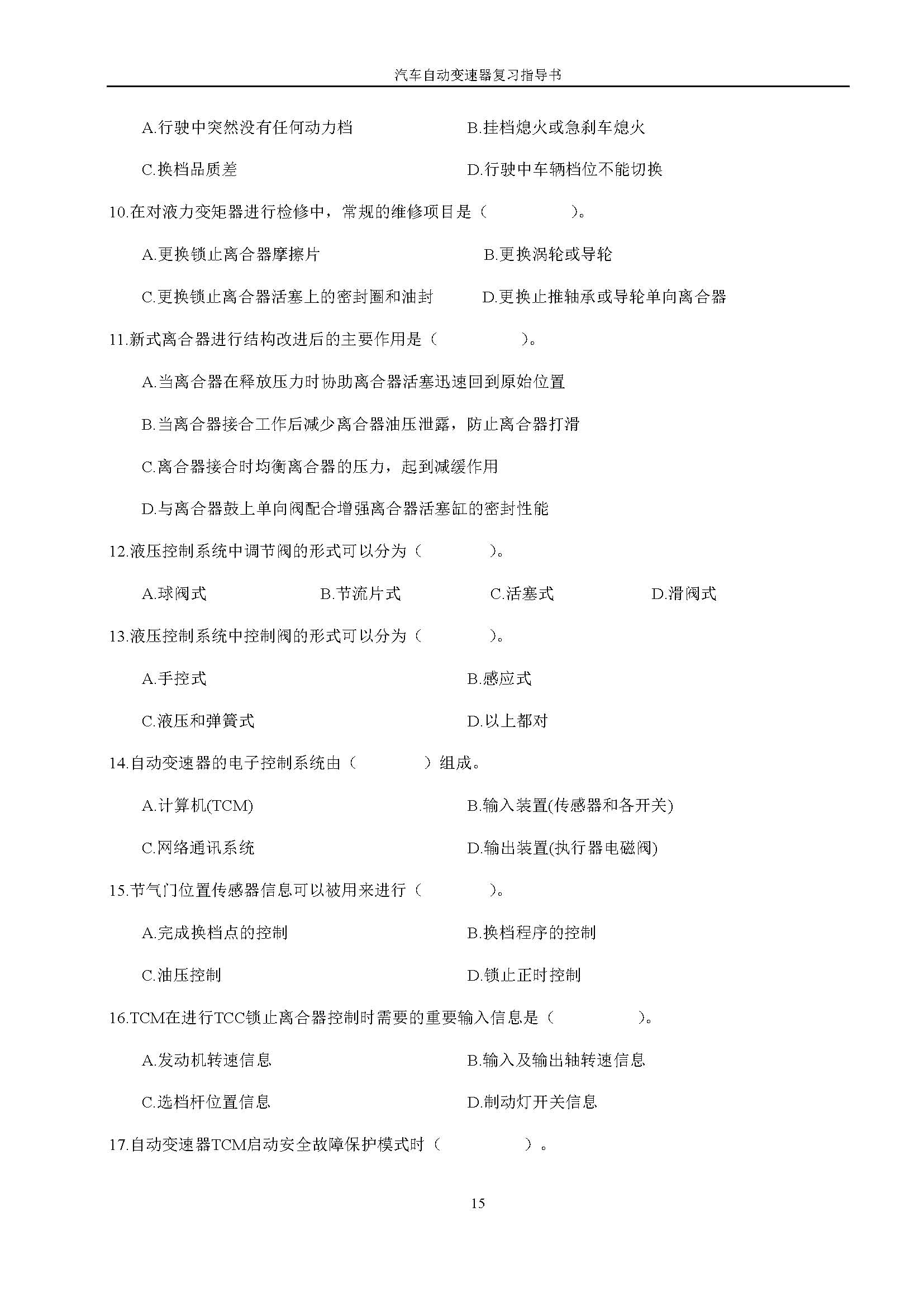 03938《汽车自动变速器》课程复习指导书